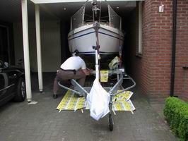 eigenaar bij deze boot geen trailer en konden we eerst op zoek naar een