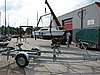 boot boven de trailer getakeld worden. De trailer moesten wij natuurlijk nog